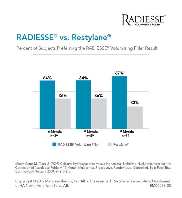 • In clinical studies, RADIESSE® patients were more satisfied with the results.